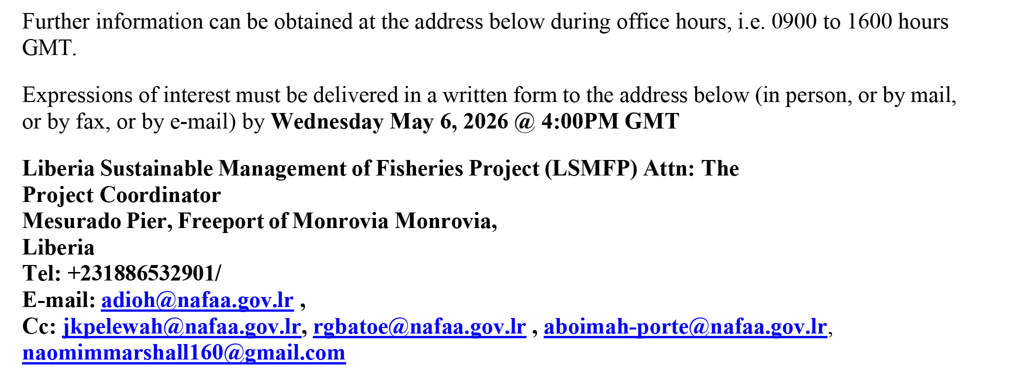 Liberia Sustainable Management of Fisheries Project (LSMFP)
