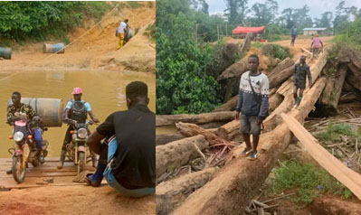 Vehicles and motorcycles, can no longer cross over the damaged bridge, thereby forcing people to rely on makeshift floaters to transport goods; a risky method that particularly endangers the lives of commuters, among them are women, children and the elderly.